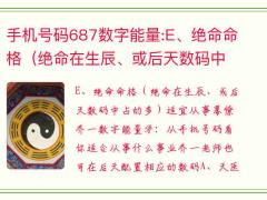 绝命星的数字有37 、 73,代表的含义是性格:冲动,重情义,财运:投资,负债事业:金融,投资,婚姻:激情离婚健康:肾脏,血糖天医星的数字有13 、 31,代表的含义是性格:善良,单纯,财运:财富(金钱),福报事业:成大事,业绩好,婚姻:正桃花,正婚姻健康:血压,血液六煞星的数字有38 、 83,代表的含义是性格:善良,单纯,财运:财富(金钱),福报事业:成大事,业绩好,婚姻:正桃花,正婚姻健康:血压,血液伏位星的数字有44 、 33,代表的含义是性格:被动,死板,财运:固定收入事业:按部就班,婚姻:被动,平淡健康:心脑,慢性Bing祸害星的数字有23 、 32,代表的含义是性格:能说,口舌,财运:靠口生财事业:用嘴吧吃饭,婚姻:吵架,离婚健康:呼吸,身体差生气星的数字有39 、 93,代表的含义是性格:乐观,开朗,财运:贵人财,意外财事业:服务,公关,婚姻:乐观,和谐健康:肠胃,眼耳鼻五鬼星的数字有36 、 63,代表的含义是性格:聪明,多变,财运:偏财,暗财事业:策划,宗教,婚姻:外遇,离婚健康:肠胃,眼耳鼻延年星的数字有43 、 34,代表的含义是性格:强势,固执,财运:辛苦,压力事业:领导,专业,婚姻:专一,主导健康:肩颈,神经分析手机号最主要还是根据八星磁场中3的数组组合的吉凶两星及等级和大小来判断其具体承载的含义