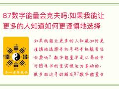 乔一老师经常说,数字本身没有好运气或坏运气,它是数字和数字的组合,以确定其好坏