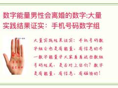 共享,咱们从数字信息学专业的视点剖析,男人出不越轨,其实和咱们的手机号码有很大的联系,有什么样的号码数字就会导致什么样的成果,下面咱们来看下哪些数字会导致越轨?