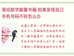 不管咱们是经过手机号码,仍是经过咱们的八字,咱们在很了解自己性情的时分,咱们才能够知道咱们该在哪几个方面做出调整,全部的全部咱们要先了解自己,再去经过方法来调整咱们的磁场,咱们才能够迎候更好的自己!