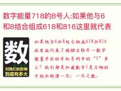 也不是只有这层意思,总的来说不管它们组合在一起表现出什么样的寓意,我们都要明白,每两个数码的组合,他们其中的含义绝对不止一两点,会包括我们生活中的方方面面,比如情感,行为举止,运势等,再根据这个组合前后的磁场来综合判定