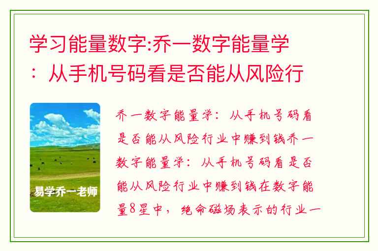 此文由 乔一数字能量学号码 编辑,未经允许不得转载!:首页 > 号码解读 » 学习能量数字:乔一数字能量学 :从手机号码看是否能从风险行业中赚到钱
