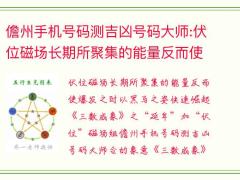 好了,当然事事有利也有弊,手机号码里伏位太多了对身体是有影响的,特别是心脏方面,所谓过犹不及就是这个意思