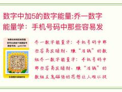 分享:案例五,15120014156:从手机号码中可以看到色情场所以及不正当的行为:1、绝命的伏位数组1512001;215120014156:从手机号码中可以看到色情场所以及不正当的行为:1、绝命的伏位数组1512001、生气数组:1415;3、六煞数组:156.反过来,当我们看到如此类似的手机号时,就可以简单解读使用者的情况了!