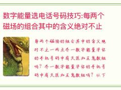 从出生以来,我们就开始接触各类的数字,从与生俱来的身份证号码、分秒不离的电话号码、车牌号码、门牌号等等,你是否思考过这些不同的数字能给我们带来不一样的磁场影响呢?数字磁场是看不见的,但它的力量却是巨大的,就像万有引力一样,我们每个人身上的数字磁场无时无刻不在影响你的人生