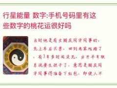2,手机号码有这几个数字桃花运旺,异性缘好,六煞加生气场组合, 416、476、938、674 等 桃花异性缘好、很开心,花花公子的代表,六煞磁场和生气磁场的组合是善于交流的组合磁场之一