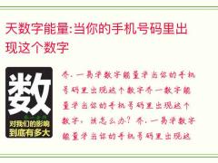 手机号码已经是人类离不开的工具了,而命有命理,数有数理,任何形式的存在,都会以波的形式对人产生影响,手机号码也不例外
