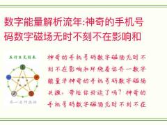 数字能量能打动大家的莫过于它的吉凶特征,而数字能量的预测功能并非只是看吉凶的,我们可以通过数字,特别是手机号码中的数字来了解对方的特征,