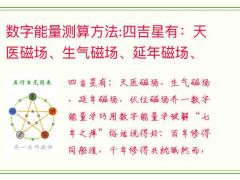 数字能量中有八颗星,分别是天医、生气、延年、伏位、六煞、五鬼、祸害、绝命,这八颗星之相互组合起来,就构成了很多不同的现象,