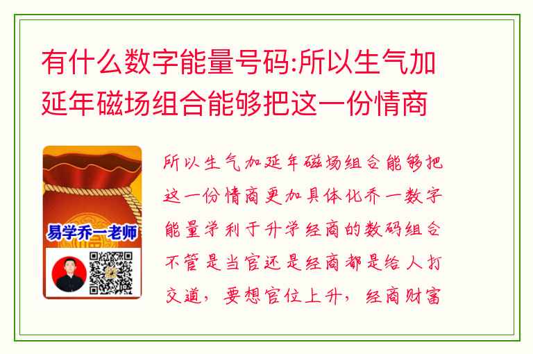 此文由 乔一数字能量学号码 编辑,未经允许不得转载!:首页 > 数字能量学 » 有什么数字能量号码:所以生气加延年磁场组合能够把这一份情商更加具体化