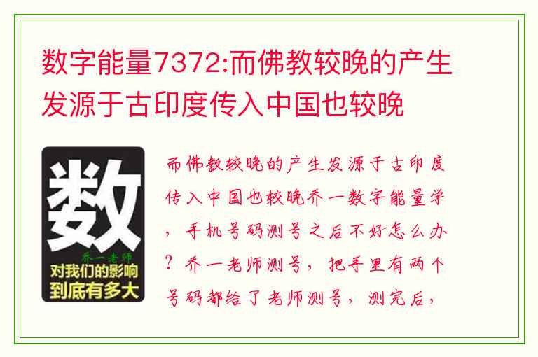 此文由 乔一数字能量学号码 编辑,未经允许不得转载!:首页 > 数字能量学 » 数字能量7372:而佛教较晚的产生发源于古印度传入中国也较晚