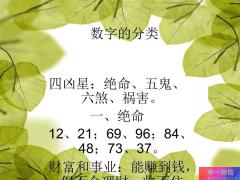 属于絕命磁场的数组有96,69,48,84,37,73,21,12。絕命磁场天资聪颖,性格灵活,具有坚强的意志,对事业执着追求,迎难而进。可成就大事业。喜欢竞争,善于争辩,富有冒险精神,但是也会因为太有野心而急功冒进,最终惹下不小的麻烦,所以说手机号码要尽量减少使用,凶星磁场如果一定要使用的话,就要弥补其中不吉祥的能量之后再去使用。