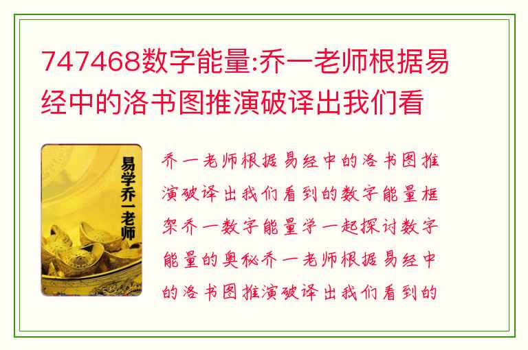 此文由 乔一数字能量学号码 编辑,未经允许不得转载!:首页 > 数字组合 » 747468数字能量:乔一老师根据易经中的洛书图推演破译出我们看到的数字能量框架