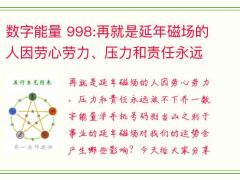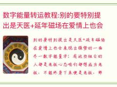但并非谁都可以使用延年数字磁场,因为延年数字磁场里,有分能量大小,况且还要细分当事人的需求,及他的种种背景,很多因素都要考虑进去