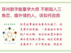 姻缘:18、81的姻缘容易是主动招惹第三者,不管是男还是女,都是主动招惹第三者。婚姻存在不确定性,容易有第三者的关系,非常不安分,外遇也就非常多,是离婚率比较高的一种磁场。