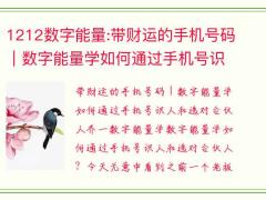 1212数字能量:带财运的手机号码|数