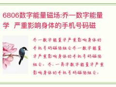 许多了解点数字的朋友同学同事,就自己给自己换号码,岂不知灾天医数字叠加:1、得财比较连续 2、安稳的收入来历 3、爱情长期甜美 4、血液血压等疾Bing短时间不能彻底治愈祸正在向自己走来,当你不明白的时宁可用本来的号码,也不要容易自己给自己改号!
