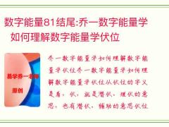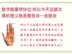 按数字能量视点了解,数字的吉凶不以你的喜爱而改动,也便是说你喜爱某些数字,不代表它便是你的走运数字,对你有利的数字;也许是你的磁场招引,又或许仅仅习气罢了,终究还要回到磁场的组合分析上来