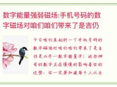 手机号码作为后天磁场,对我们的运势产生深刻的影响,所有发生的事情,都可以从手机号码里找到答案,及解决办法