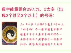 比如在712的磁场组合中,讲完带来的是破财、对抗,同时再结合绝命磁场的基础含义,说明讲话时比较刚硬和过激,完全不懂得把握尺度,甚至处于对抗的状态和心理,这种任性的语言当然不会有好的乔一数字能量学 数字能量学哪些数组容易成为怨妇收获
