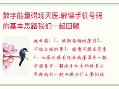 我们使用的手机号码数字磁场一直在无形中影响着我们的一切,希望大家能够重视起来手机号码对我们健康方面的影响!