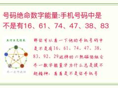 其次,使用的手机号码中有偏桃花磁场比较强的数组有;16 61 47 74 38 83 29 92 616 747 838 929等这样数组磁场出现,尤其是在手机号码结尾时,会让使用者异性缘特别强,比较注重个人形象,爱打扮,偏桃花旺了对自己的正桃花是有很大伤害的,不论男女!