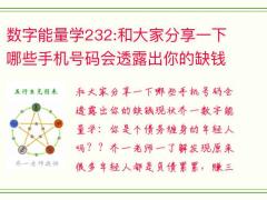 一般情况下手机号码里有祸害或绝命磁场一级,二级数组磁场,代表说话直接不听劝导致争吵,三级四级数组磁场,代表多数是脾气差为小事抱怨产生争吵,还有自己手机号码中有绝命磁场过强的数组!